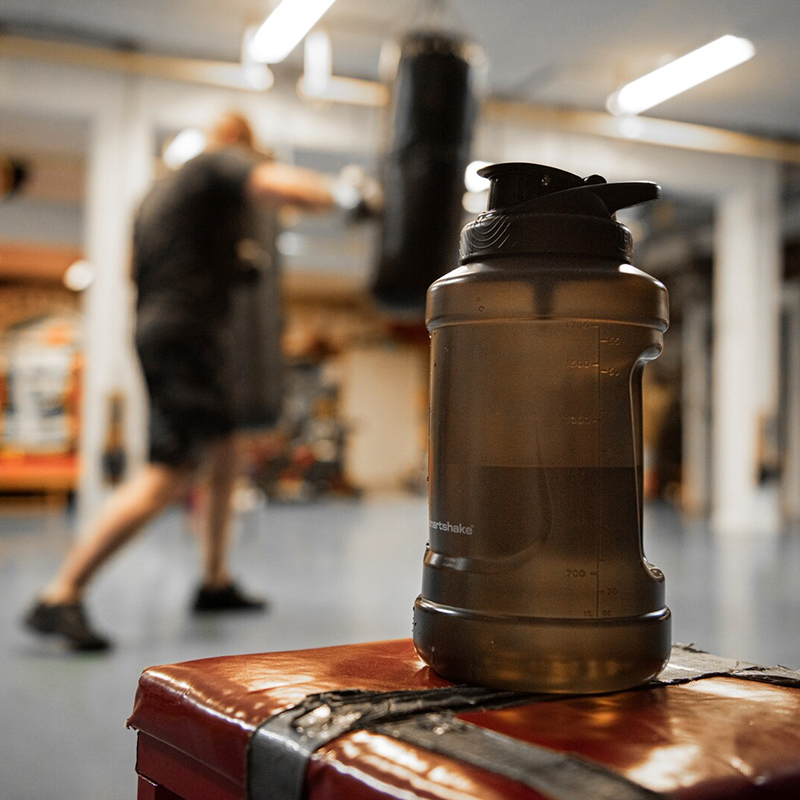 Smart Shake Ultimate Jug Black 2100ml(スマートシェイク アルティメット ジャグ)・1日の水分補給を満たす、大容量2100ml(満容量)のウォータージャグボトル・プロテインのシェイクやフルーツウォーターに対応した、ミキサーストレーナー・軽量で無駄のないシンプルモダンなデザイン・持ちやすい2つのループハンドル・側面には測定単位(ML/OZ)が記載・BPA・DEHPフリーの耐久プラスチック素材・食器洗い機、冷蔵庫、冷凍庫対応