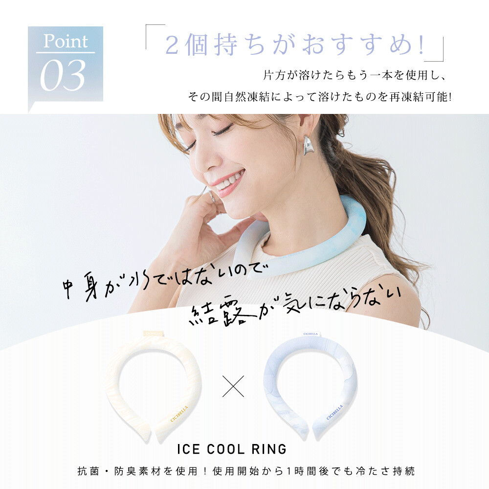 ・暑い真夏の季節でもリングはひんやりキープ!28度以下の空間で凍る不思議な氷「PCM素材」で作られた首元用のネッククーラー。