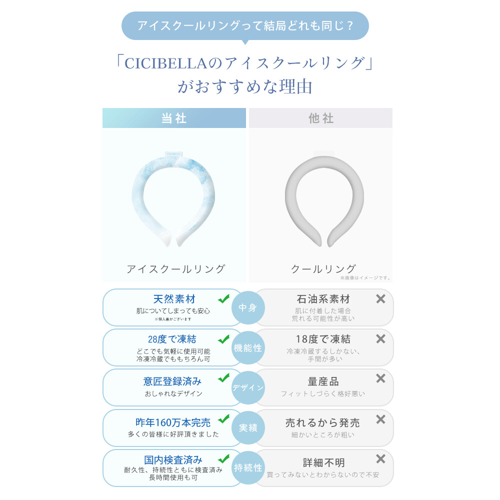 ・暑い真夏の季節でもリングはひんやりキープ!28度以下の空間で凍る不思議な氷「PCM素材」で作られた首元用のネッククーラー。