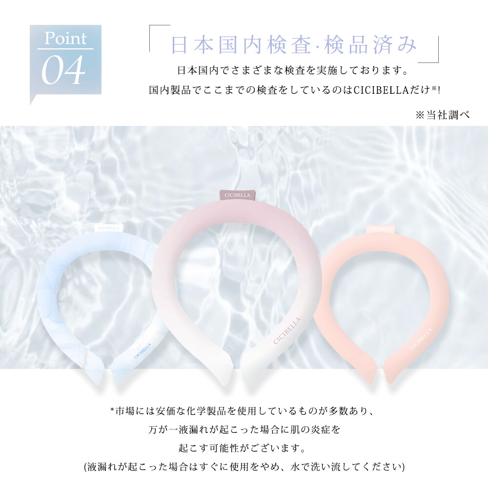 ・暑い真夏の季節でもリングはひんやりキープ!28度以下の空間で凍る不思議な氷「PCM素材」で作られた首元用のネッククーラー。