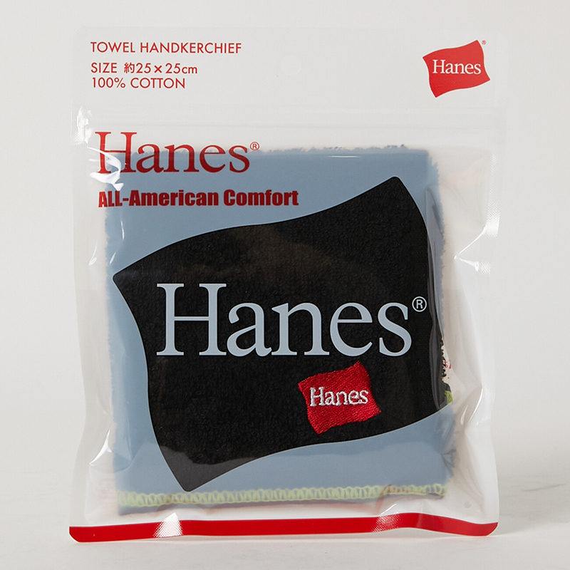 そんなHanes(ヘインズ)の代名詞でもあるパックTシャツをインスパイアした窓枠パッケージと12色のカラーが映えるタオルハンカチです。