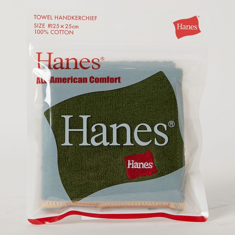 そんなHanes(ヘインズ)の代名詞でもあるパックTシャツをインスパイアした窓枠パッケージと12色のカラーが映えるタオルハンカチです。