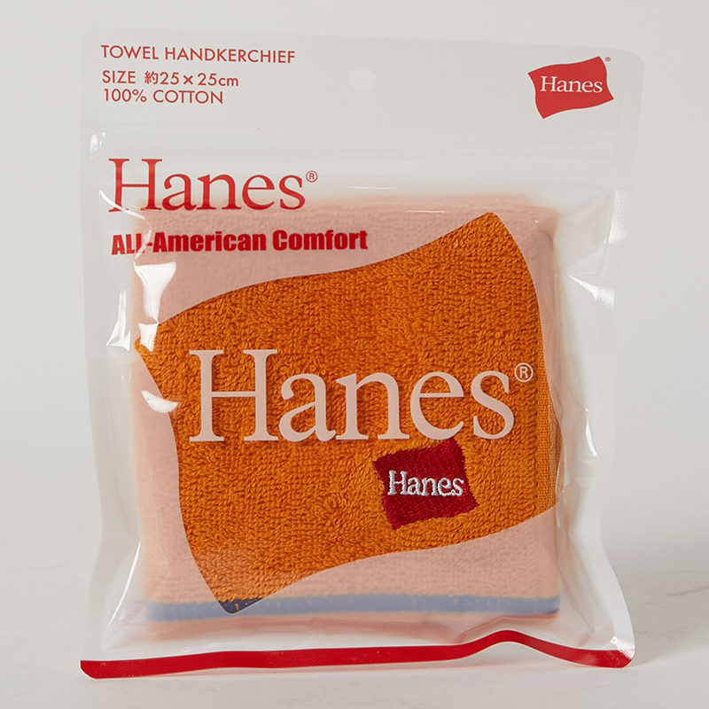 そんなHanes(ヘインズ)の代名詞でもあるパックTシャツをインスパイアした窓枠パッケージと12色のカラーが映えるタオルハンカチです。