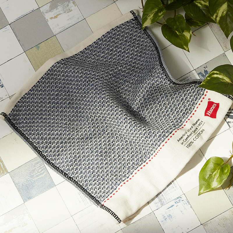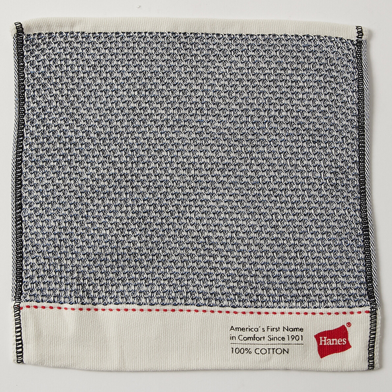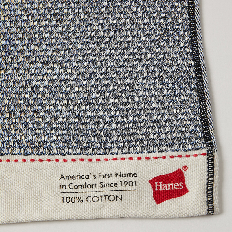 Hanes(ヘインズ)の象徴的なフラッグロゴをヘム部分にプリントしたワッフル織りタオルハンカチです。