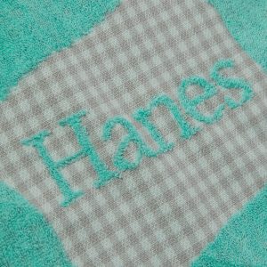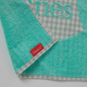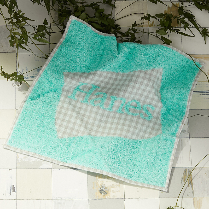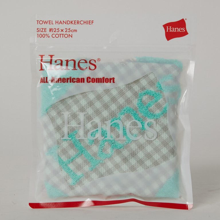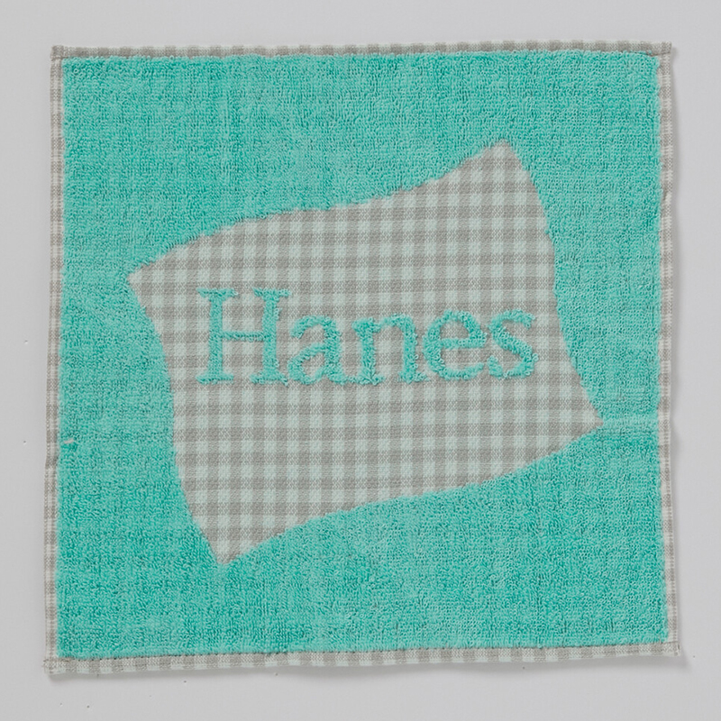 パイルのない落とし部分にはベーシックなギンガムチェックが織られています。性別問わず、シーズン通してお使い頂けます。へインズの代名詞でもあるパックTシャツをインスパイアした窓枠パッケージも商品のポイントです!