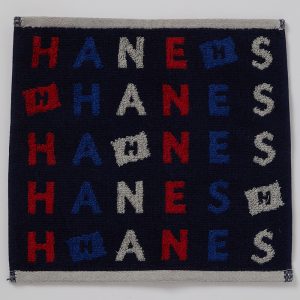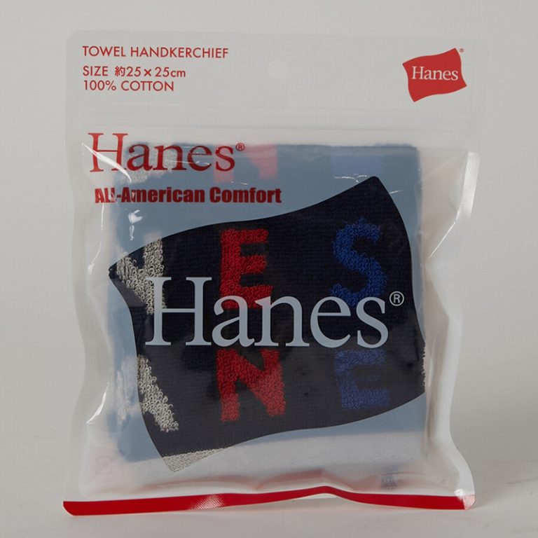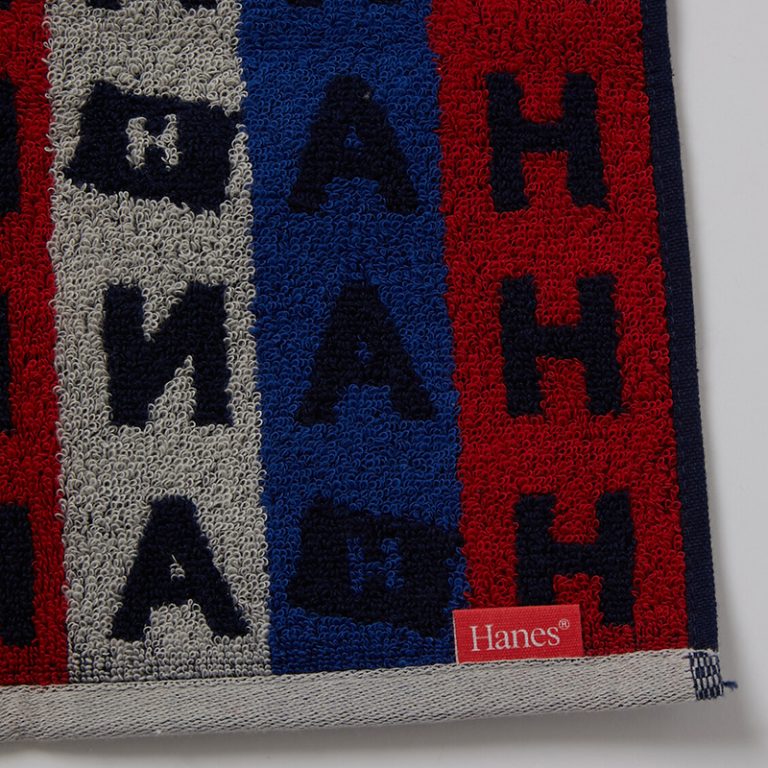 Hanes(ヘインズ)のアルファベットとフラッグモチーフを散りばめた綿100%のタオルハンカチです。