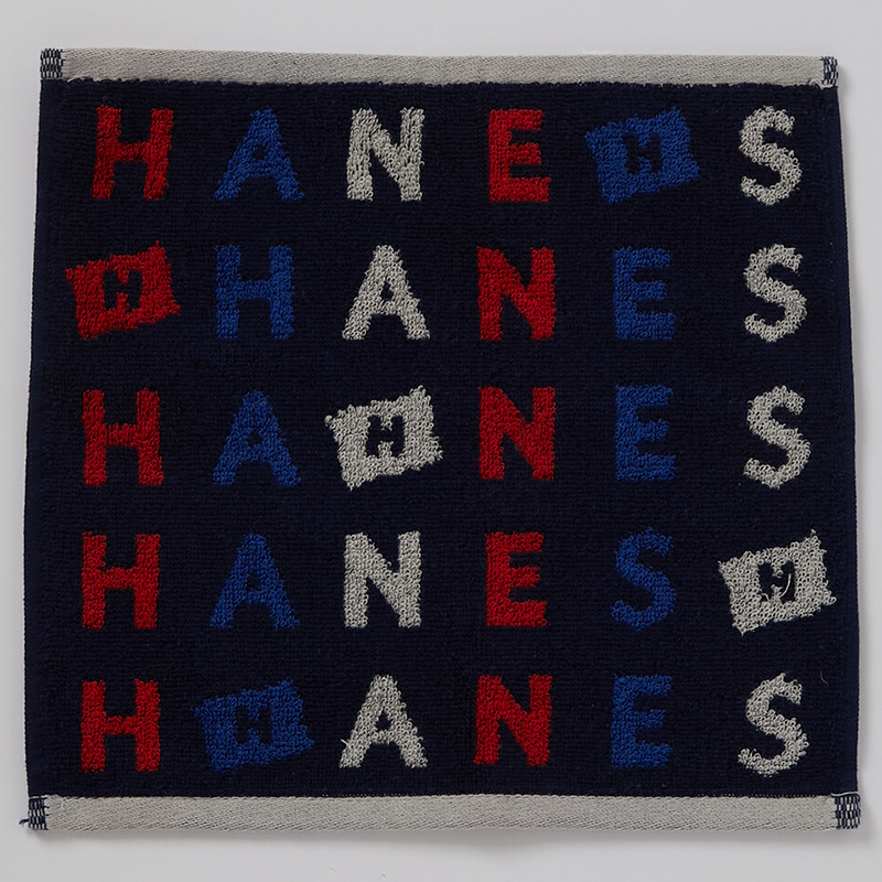 Hanes(ヘインズ)アルファベットモチーフ ジャガードタオルハンカチ(パッケージ入り)(ネイビー)