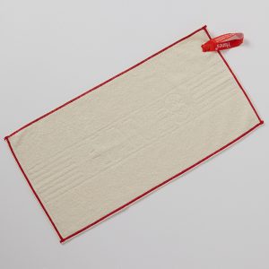 テープ付きなので、クルッと巻いて持ち運びも便利。コンパクトに収納できるオリジナルメッシュ袋付きです。テープ部分をループにして引っ掛けて使用することもできます。商品サイズは、カバンなどに入れてもかさばらない30x60cmの小さめサイズ。ジムやスイムなどのスポーツシーン、レジャー等にはもちろん、キッチンや日常使いにもおすすめです!